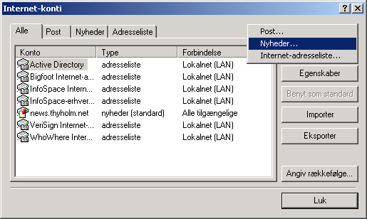Her følger en vejledning til opsætning af Outlook Express som nyhedsklient: