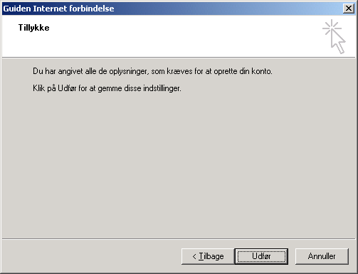 Klik på "Udfør" og tryk "Luk" i vinduet under