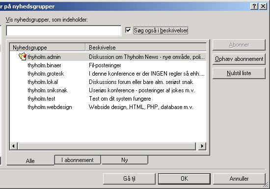 Nu kommer der et vindue frem der spørger om du vil hente nyhedsgrupper for den nyhedskonti du har tilføjet, og der trykker du "Ja", og derefter dobbeltklikker du på de grupper du vil tilføje